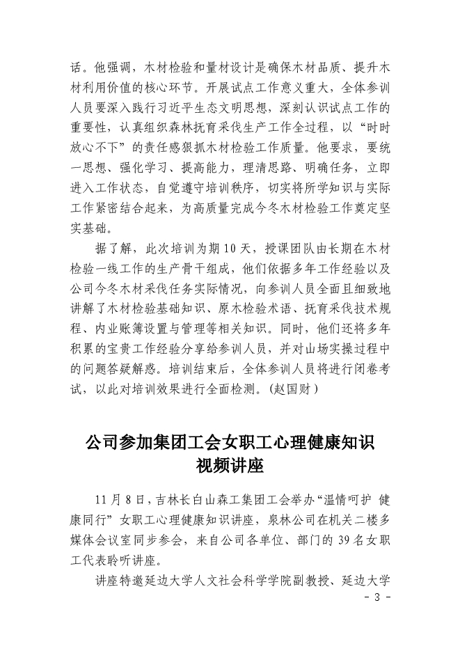 泉陽(yáng)林業(yè)有限公司信息2024年第64期